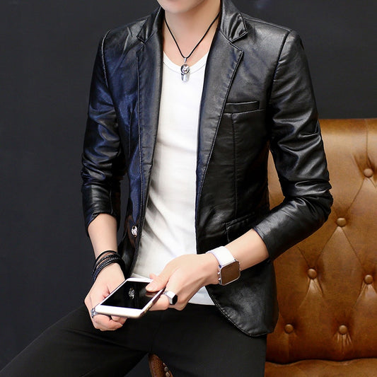 Fashion Men Leather Blazer Personality trend handsome Young British Slim-fit coat