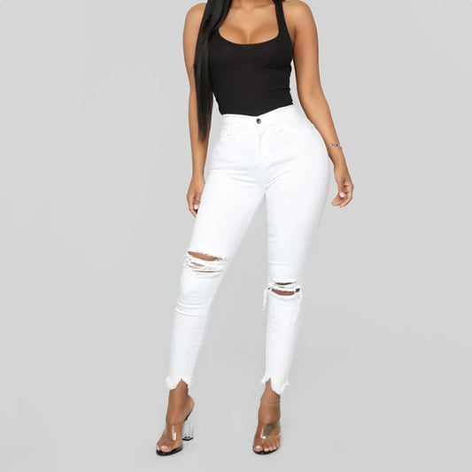 High Waist Elastic Ripped Pants Ladies Jeans Women's Pants