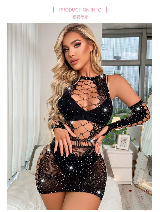 Charming Rhinestone High-Elastic Sleeve Jumpsuit, Women fashion underwear.