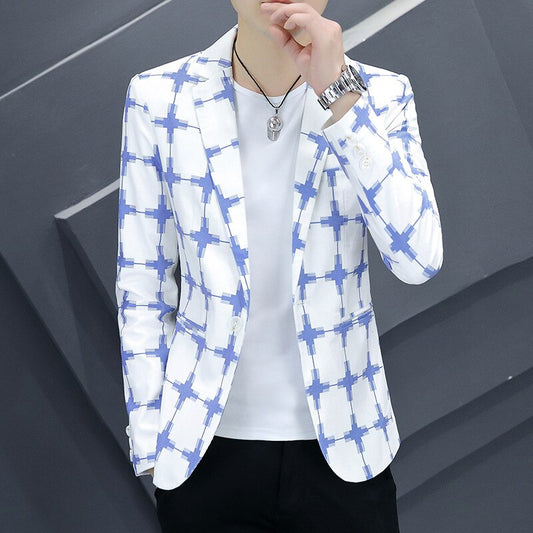 Men Fashion coat Autumn Wear New Plaid Printed blazer Youth Slim Handsome