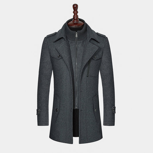 Men Winter Wool Coat Solid Color Male Trench Overcoat